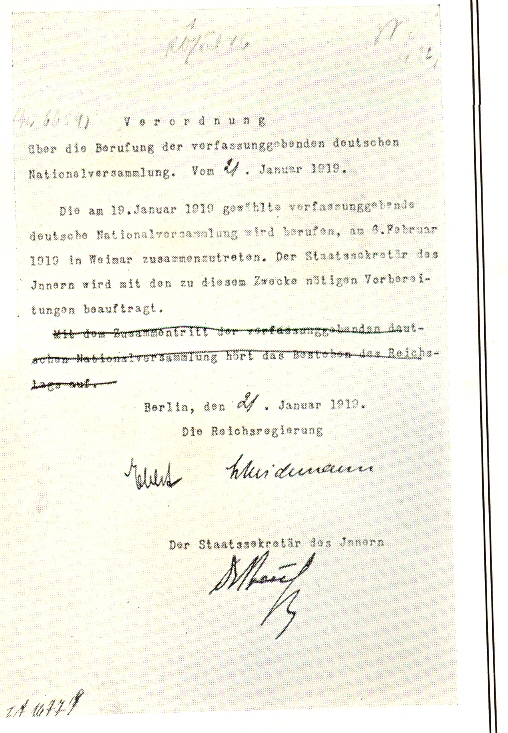 Verordnung Einberufung Nationalversammlung zur Verfassungsgebung 21.01.1919